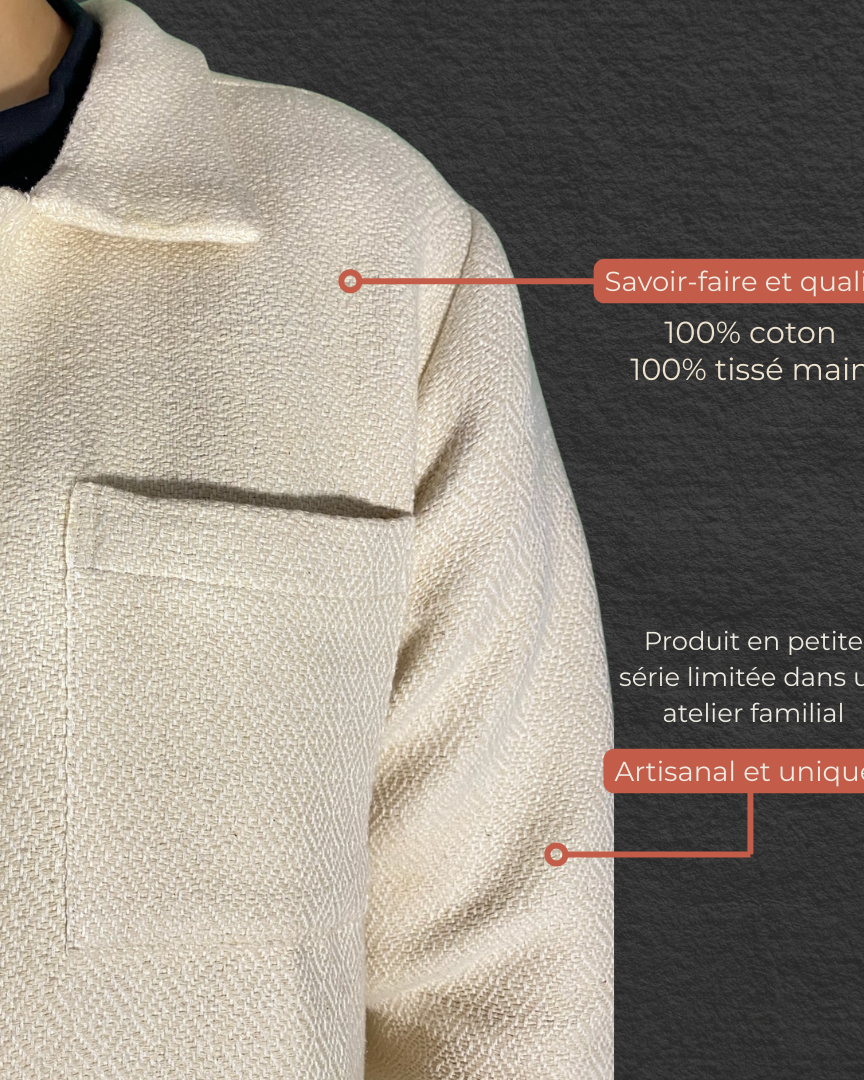 Pour cette saison, nous proposons des pièces uniques et intemporelles. Chaque création est soit en 100% coton et entièrement tissée main, ou issue de tissus récupéré des stocks dormants. Chaque pièces est conçue en petite quantité ou en précommande. Porter Juldana, c’est choisir des pièces originales, artisanales et durables.