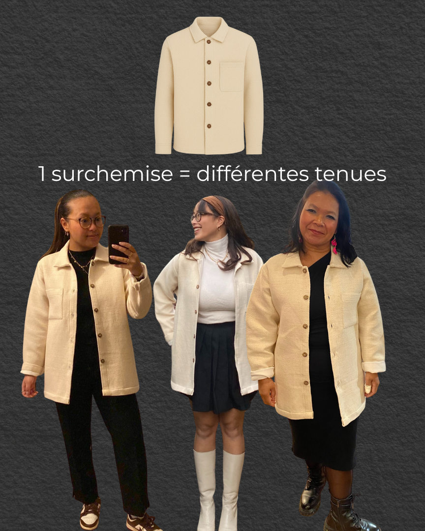 🔸 Deux lignes de boutons – Une version plus structurée et légèrement cintrée (taille femme, S femme équivalent à un M-L homme)