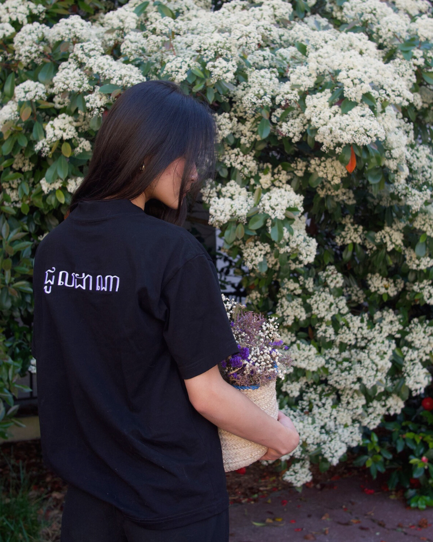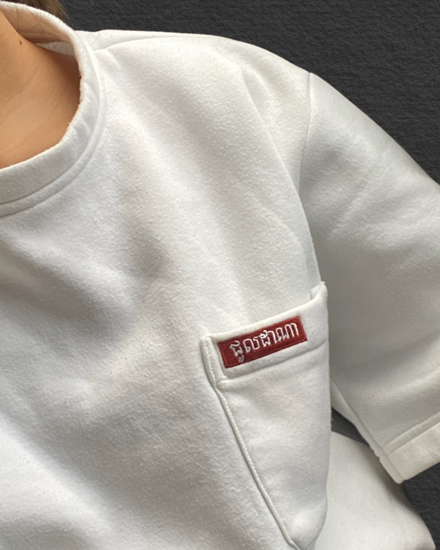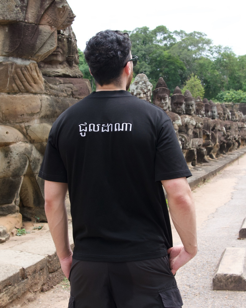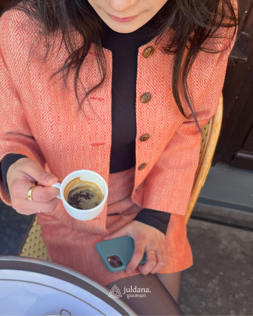 Une mode durable, qui respecte l’humain et l’environnement, basée sur de la revalorisation des tissus dormants de l’industrie textile locale et une mise en lumière des savoir-faire traditionnels cambodgien dans l’art du tissage à la main.
