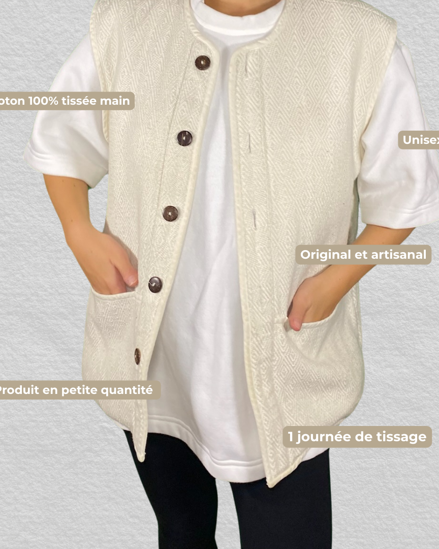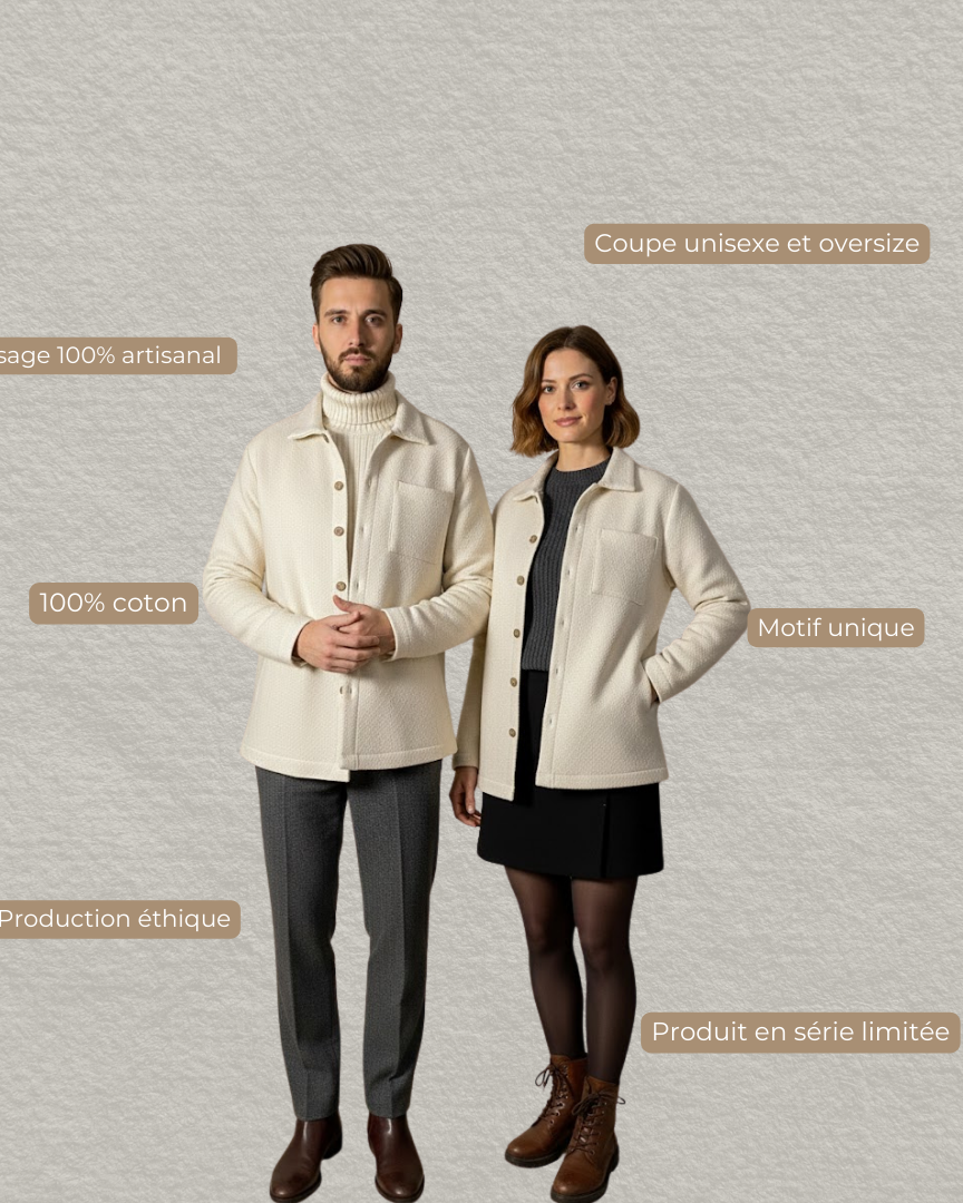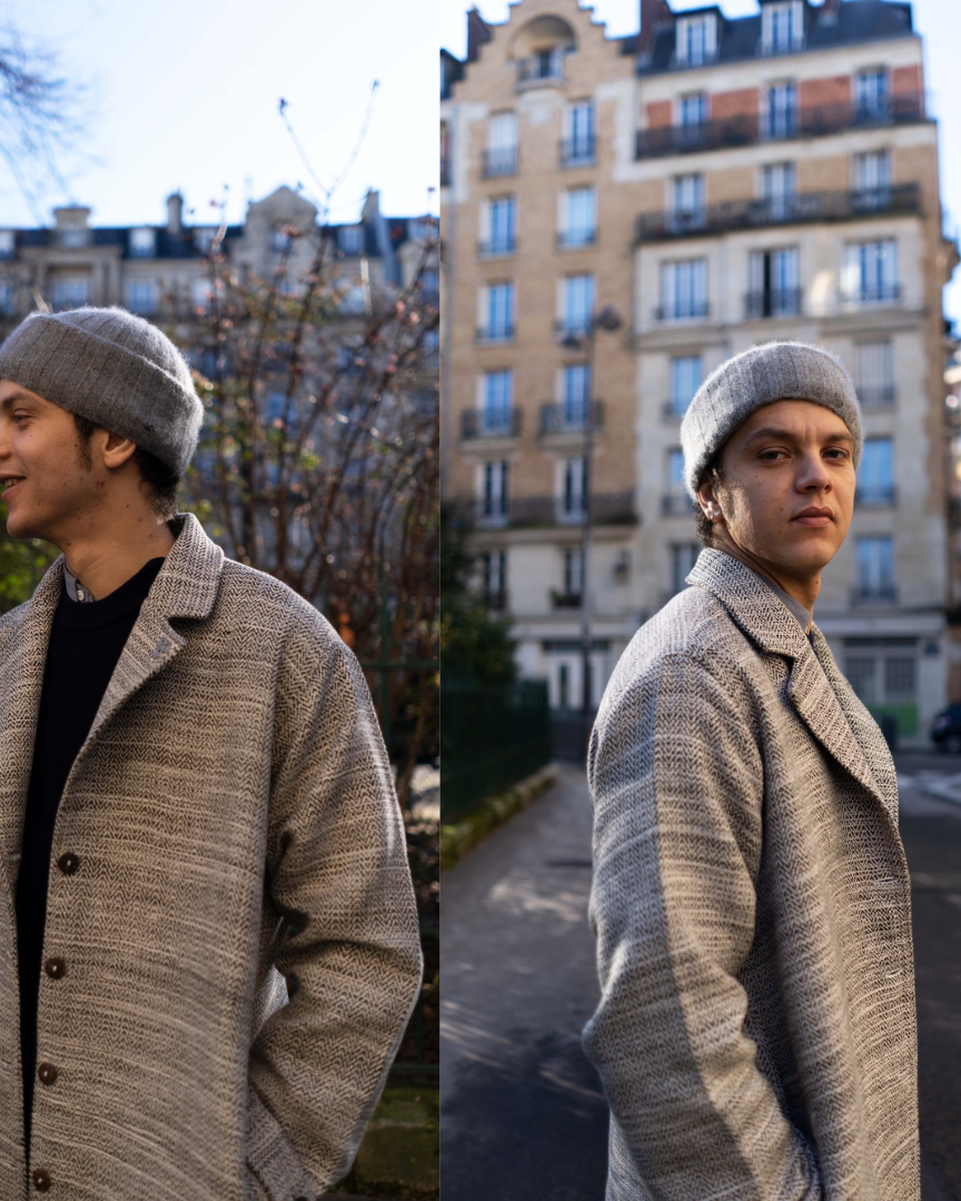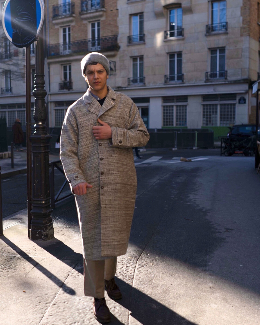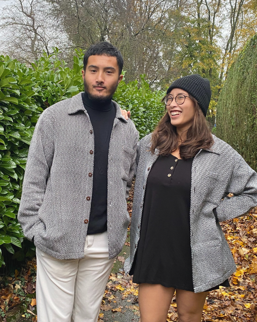Découvrir la collectionCe manteau au mélange de couleur gris, noir, blanc est une pièce unique et artisanale. Sa coupe oversize, entièrement tissé à la main en 100% coton en fait une pièce intemporelle de sa garde-robe, pour homme et femme.