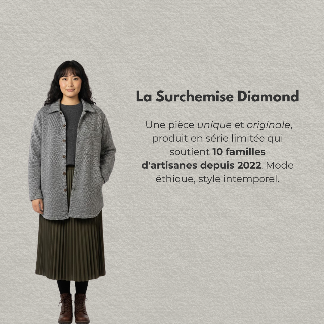 Pour cette saison, nous proposons des pièces uniques et intemporelles. Chaque création est soit en 100% coton et entièrement tissée main, ou issue de tissus récupéré des stocks dormants. Chaque pièces est conçue en petite quantité ou en précommande. Porter Juldana, c’est choisir des pièces originales, artisanales et durables.