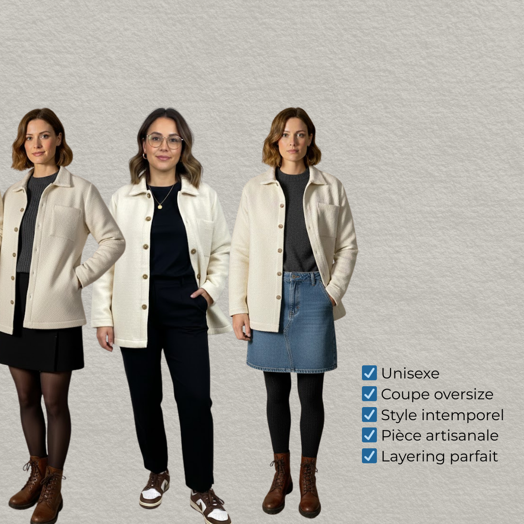 🔸 Une ligne de boutons – Une coupe ample inspirée du vestiaire masculin (taille homme, S homme équivalent à un XS femme).