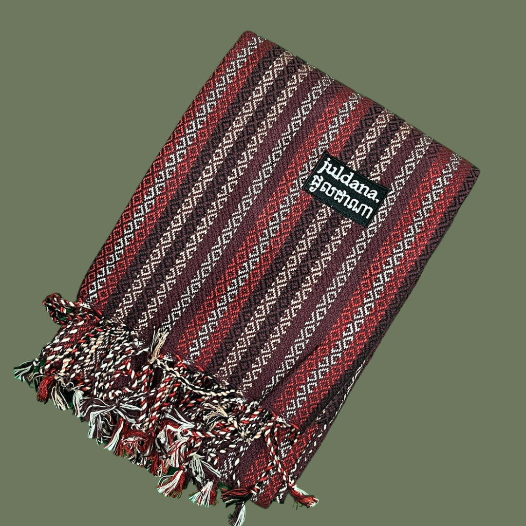 Écharpe Artisanale - Bordeaux Intense Rayé - 100% coton - Tissée à la Main en Édition Limitée