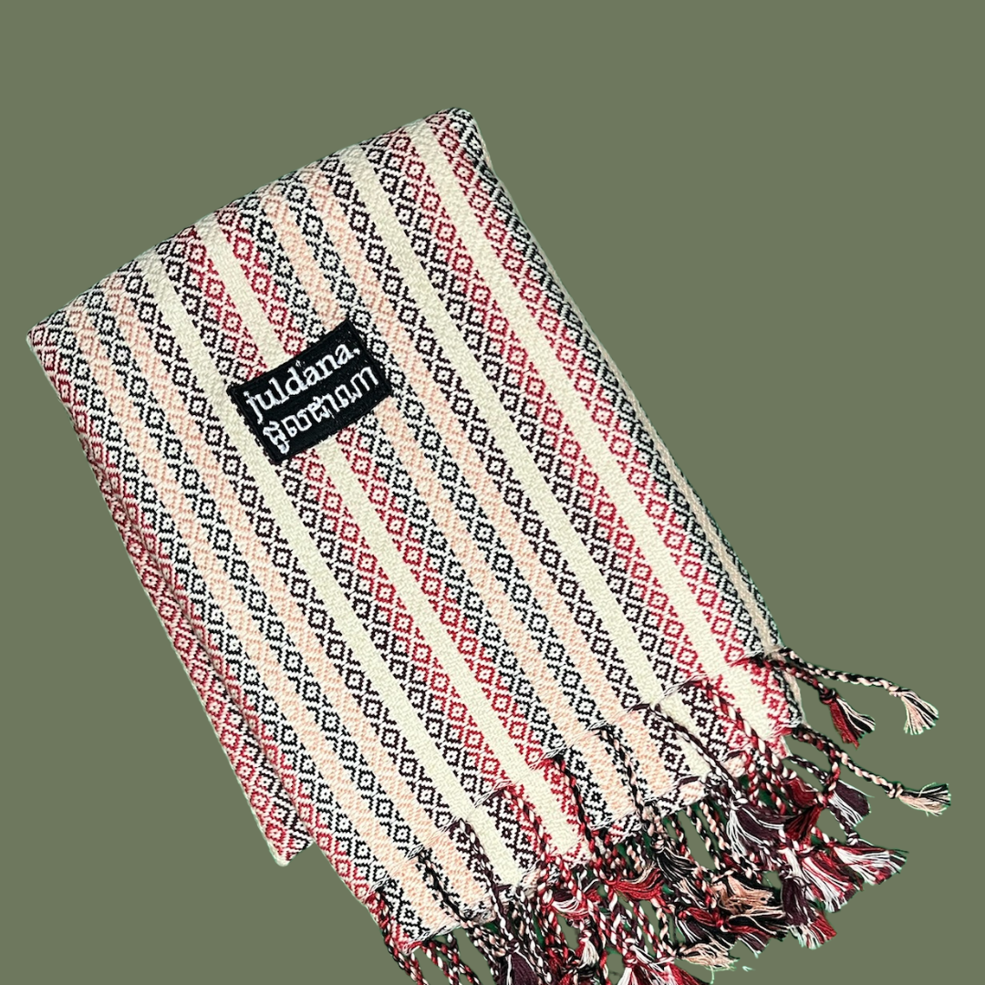 Écharpe Artisanale - Bordeaux Doux à rayures claires - 100% coton - Tissée à la Main en Édition Limitée