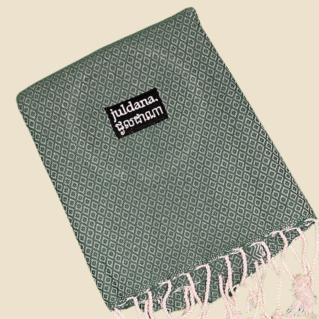 Écharpe Artisanale - Vert Sapin - 100% coton - Tissée à la Main en Édition Limitée