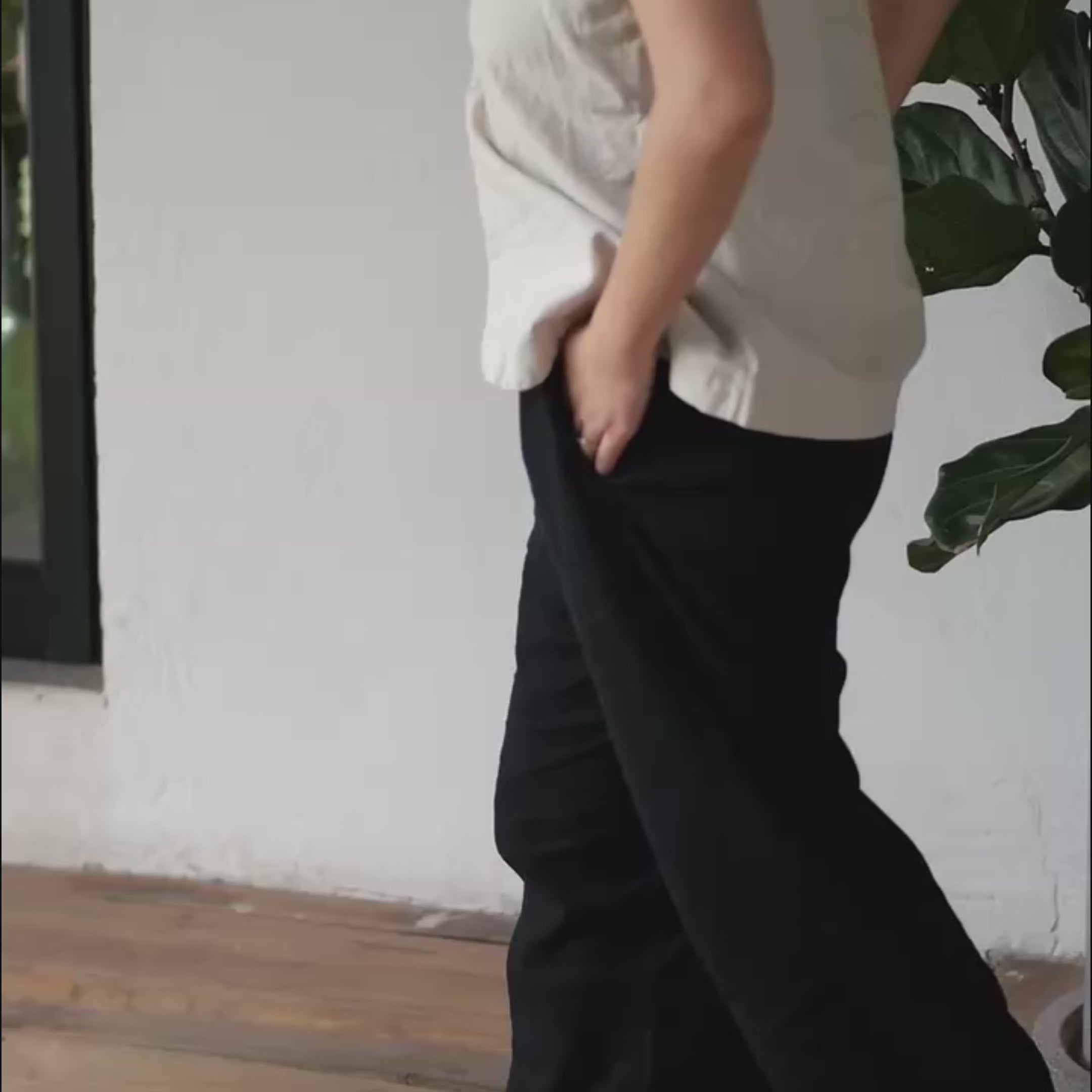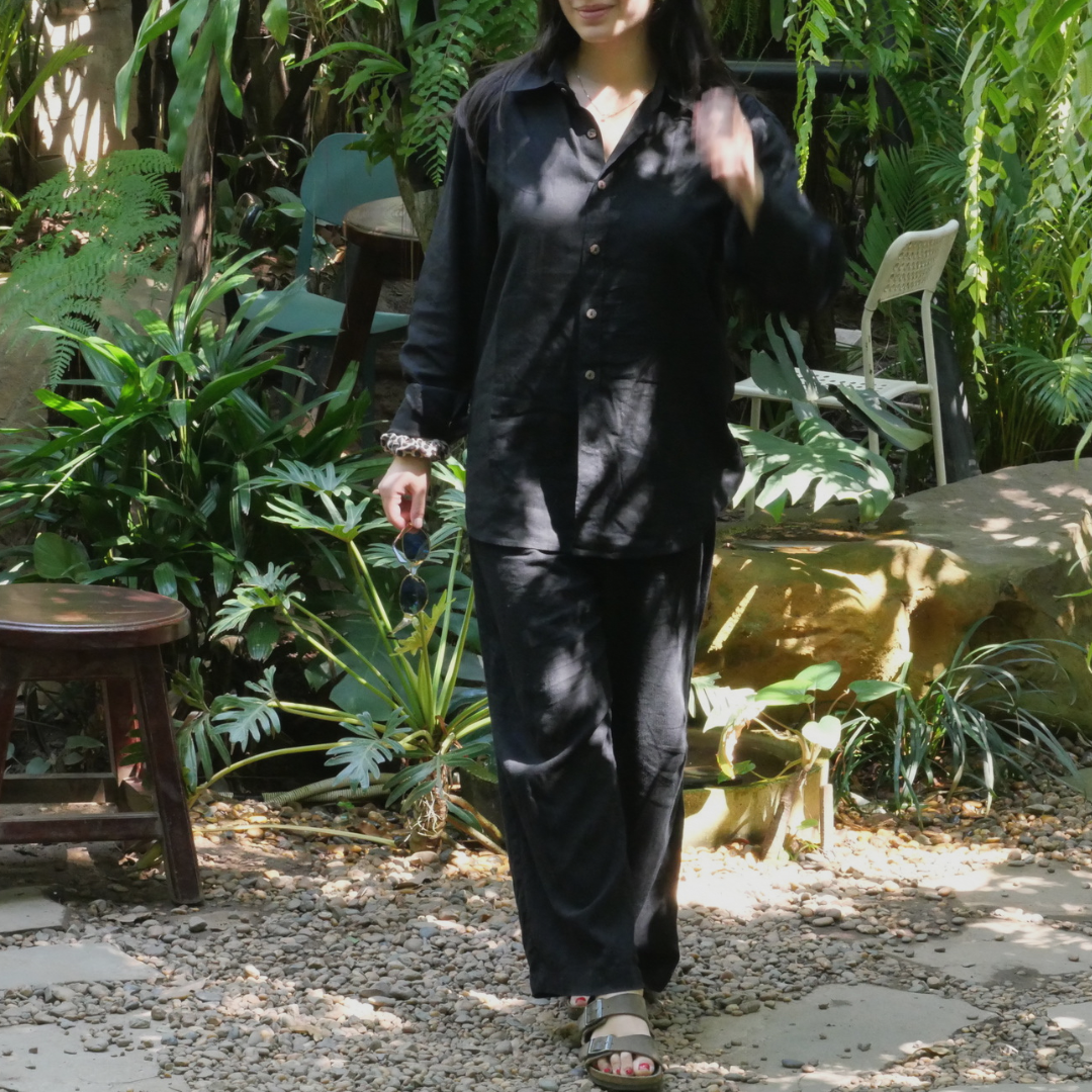 RE-THMEY - L'ensemble chemise lin noir + Pantalon lin noir