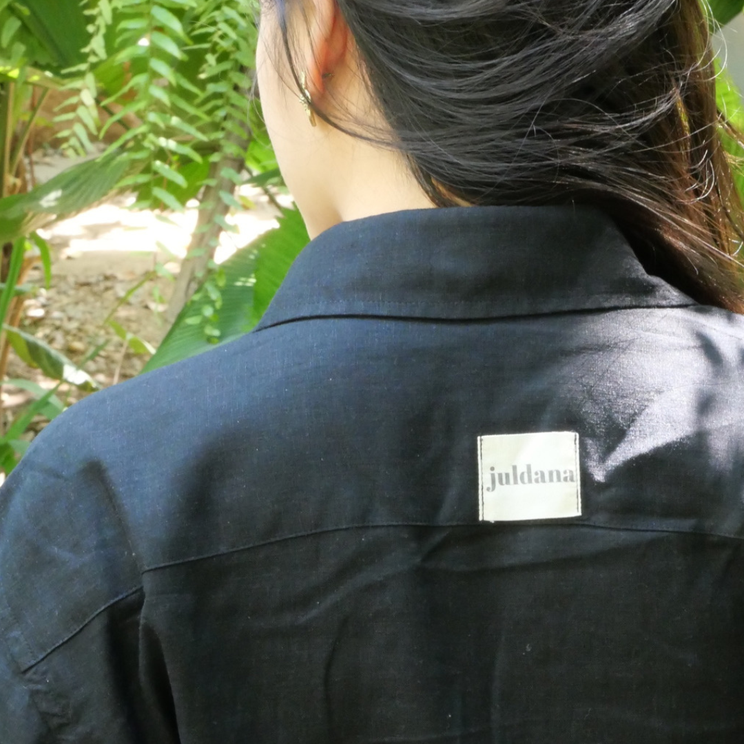 Chez Juldana, nous créons des pièces qui ont du sens. Chaque vêtement est conçu à partir de matières existantes ou tissées à la main, afin de réduire l'impact tout en valorisant un savoir-faire authentique.