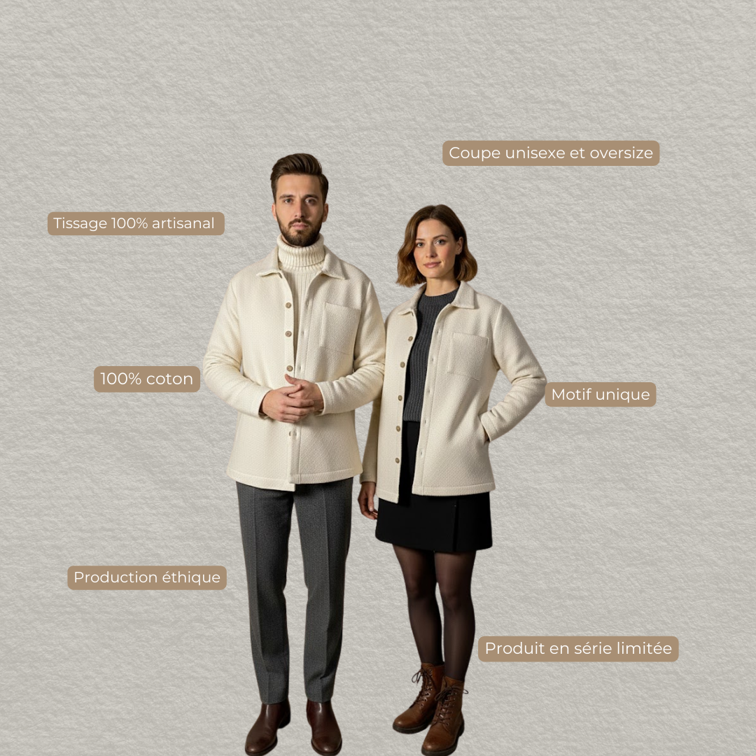 Nous croyons en une mode éthique et traçable. De la sélection des matières à la fabrication, chaque étape est pensée pour respecter les artisans, la nature et offrir une pièce porteuse de sens.