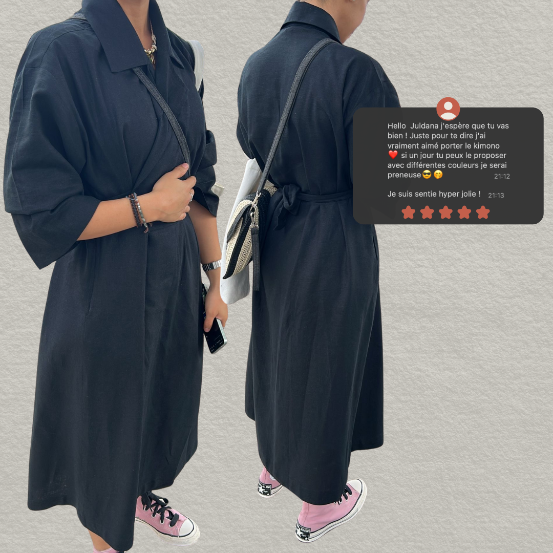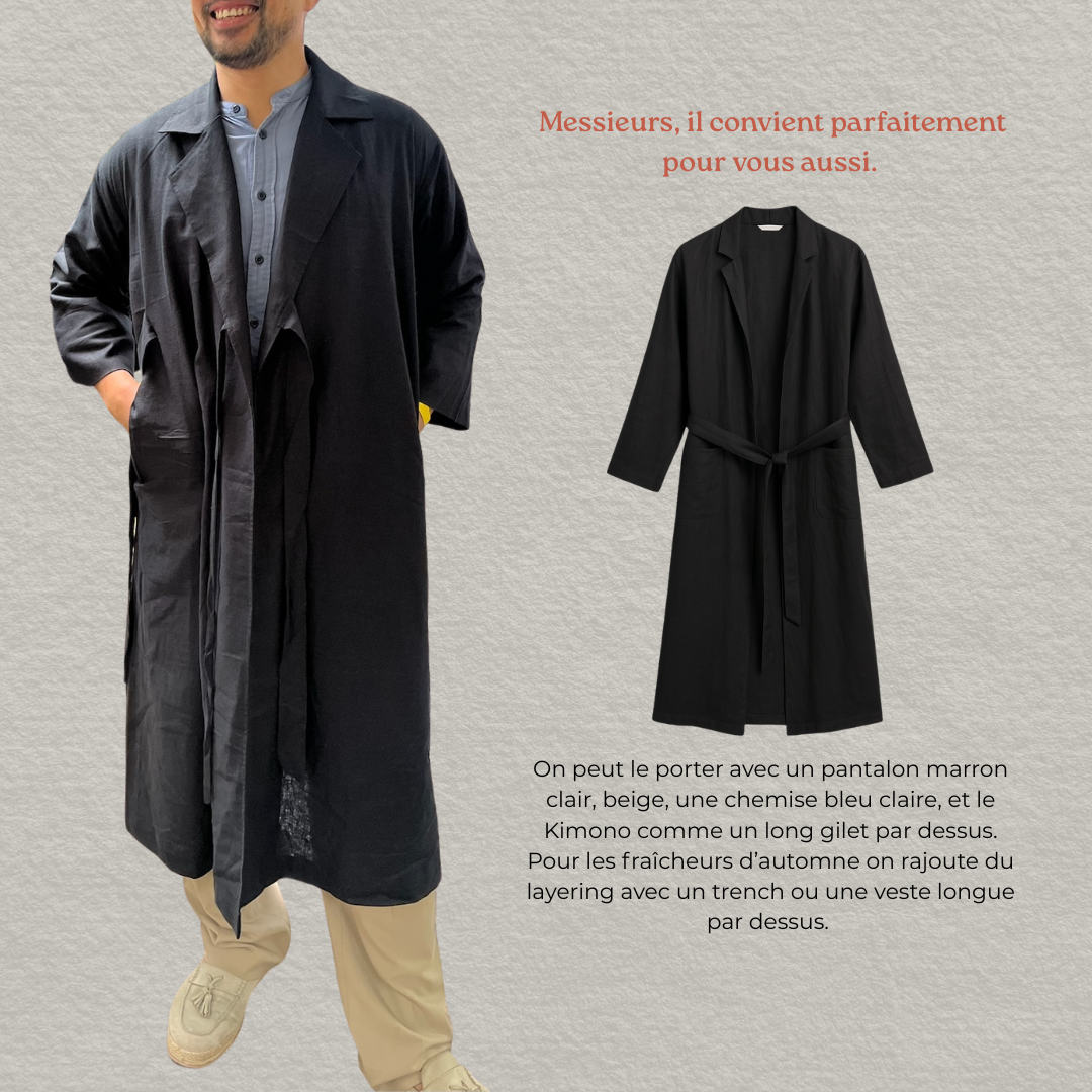 RE-THMEY - Kimono Long lin noir
