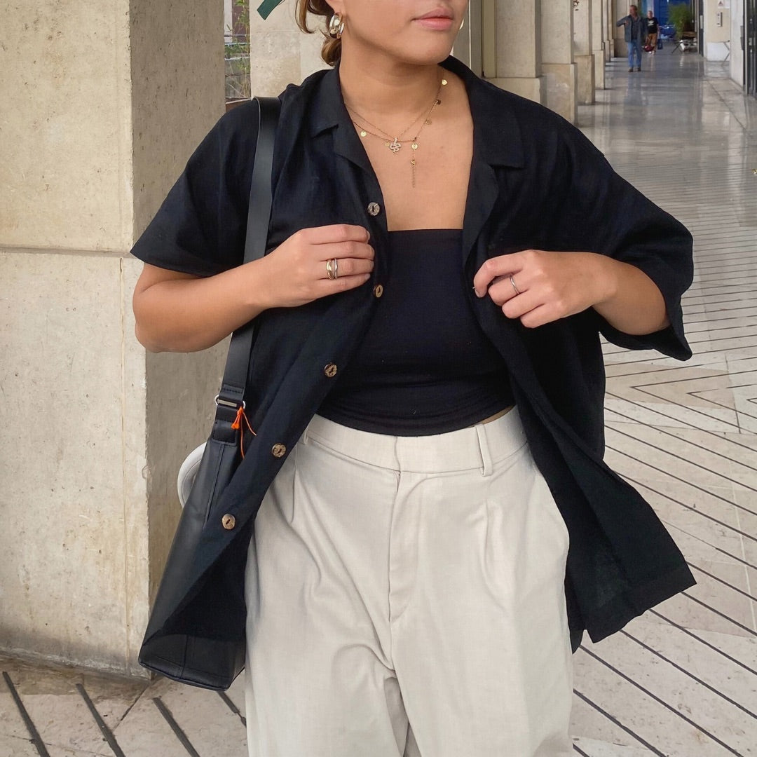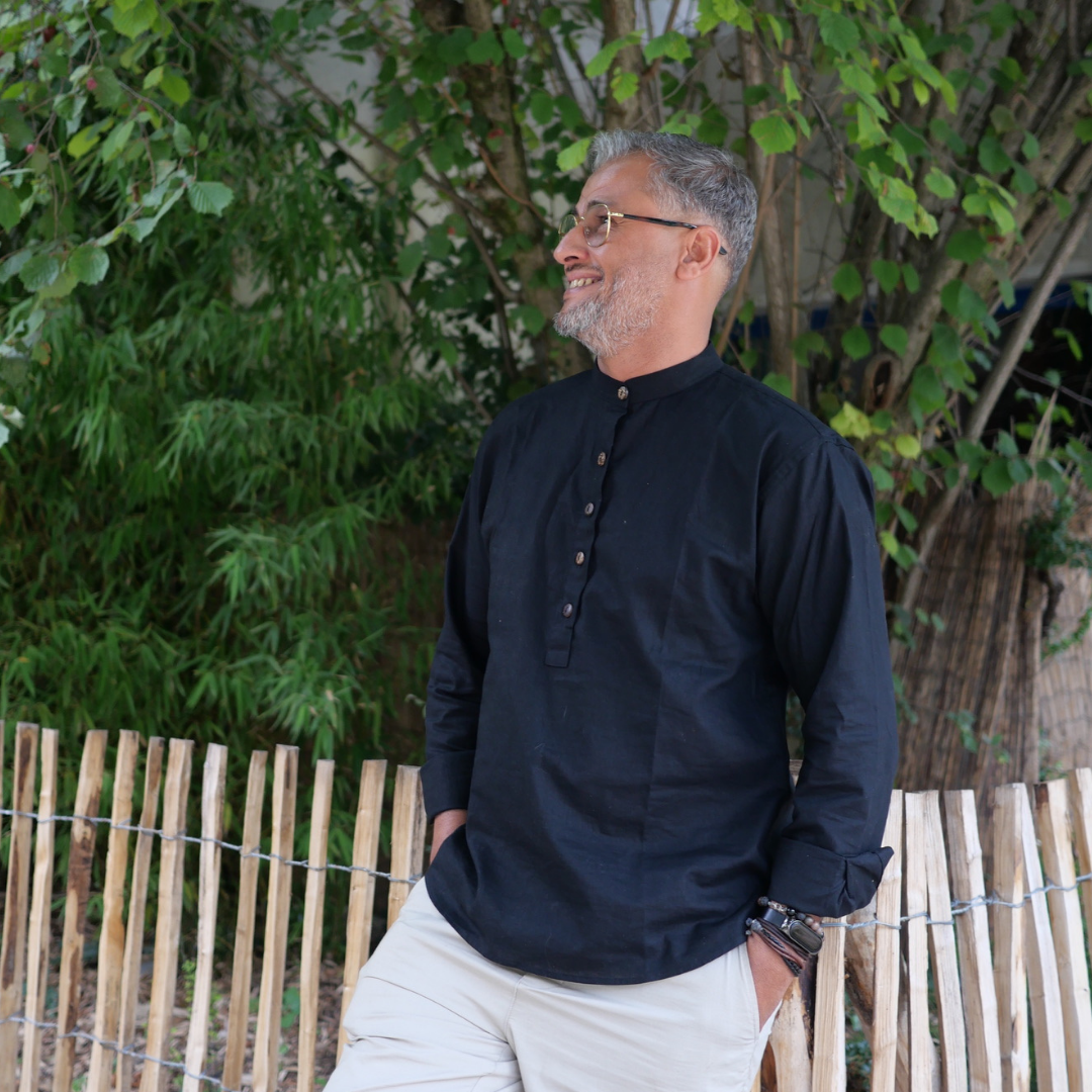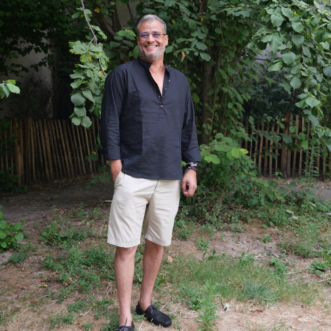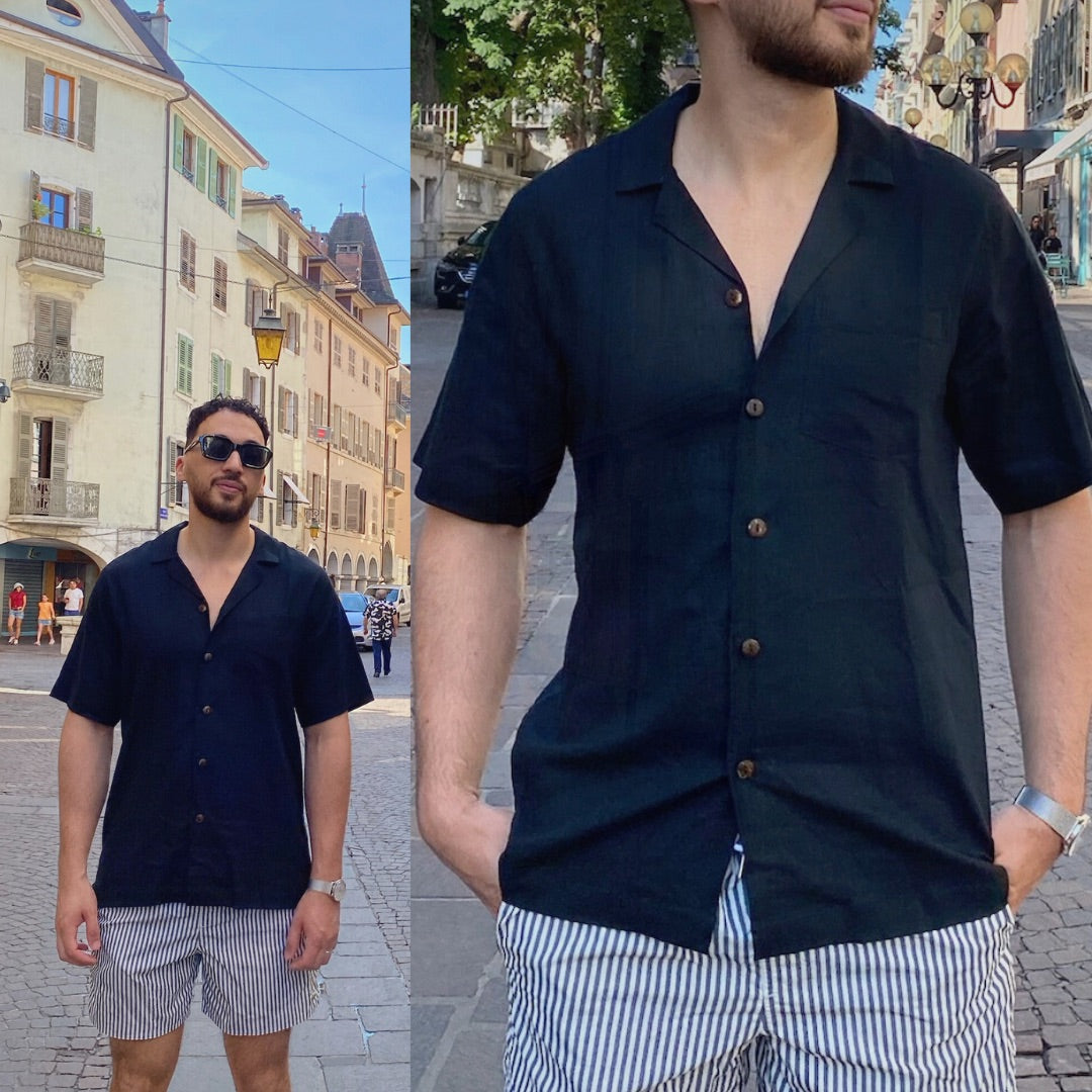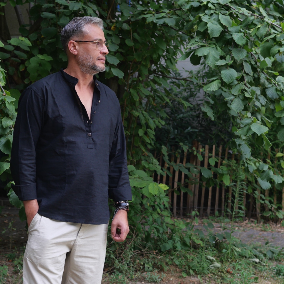 RE-THMEY - Col Mao homme en lin noir