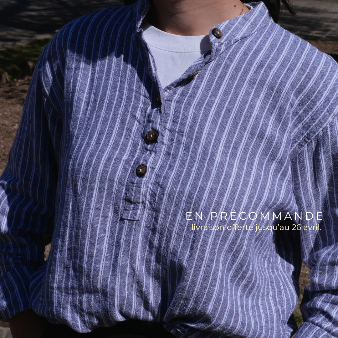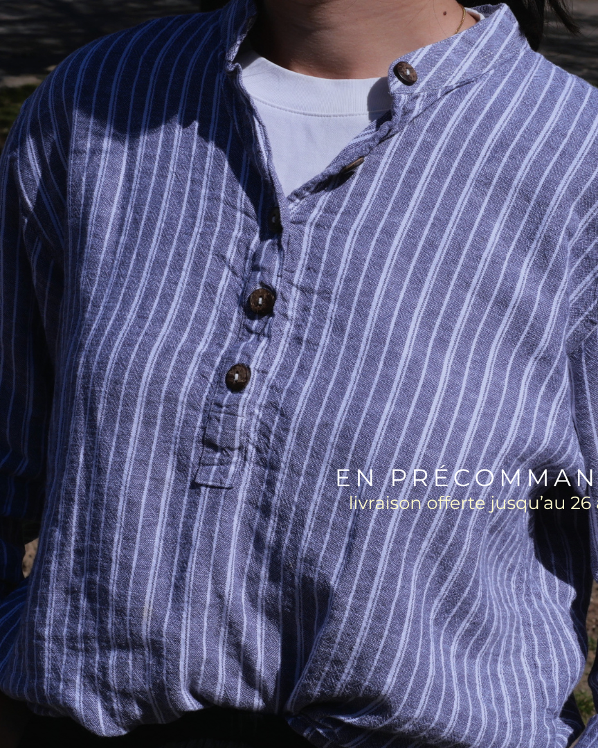 Surchemises et manteaux en coton tissé main, sweats et t-shirts en deadstock revalorisé.